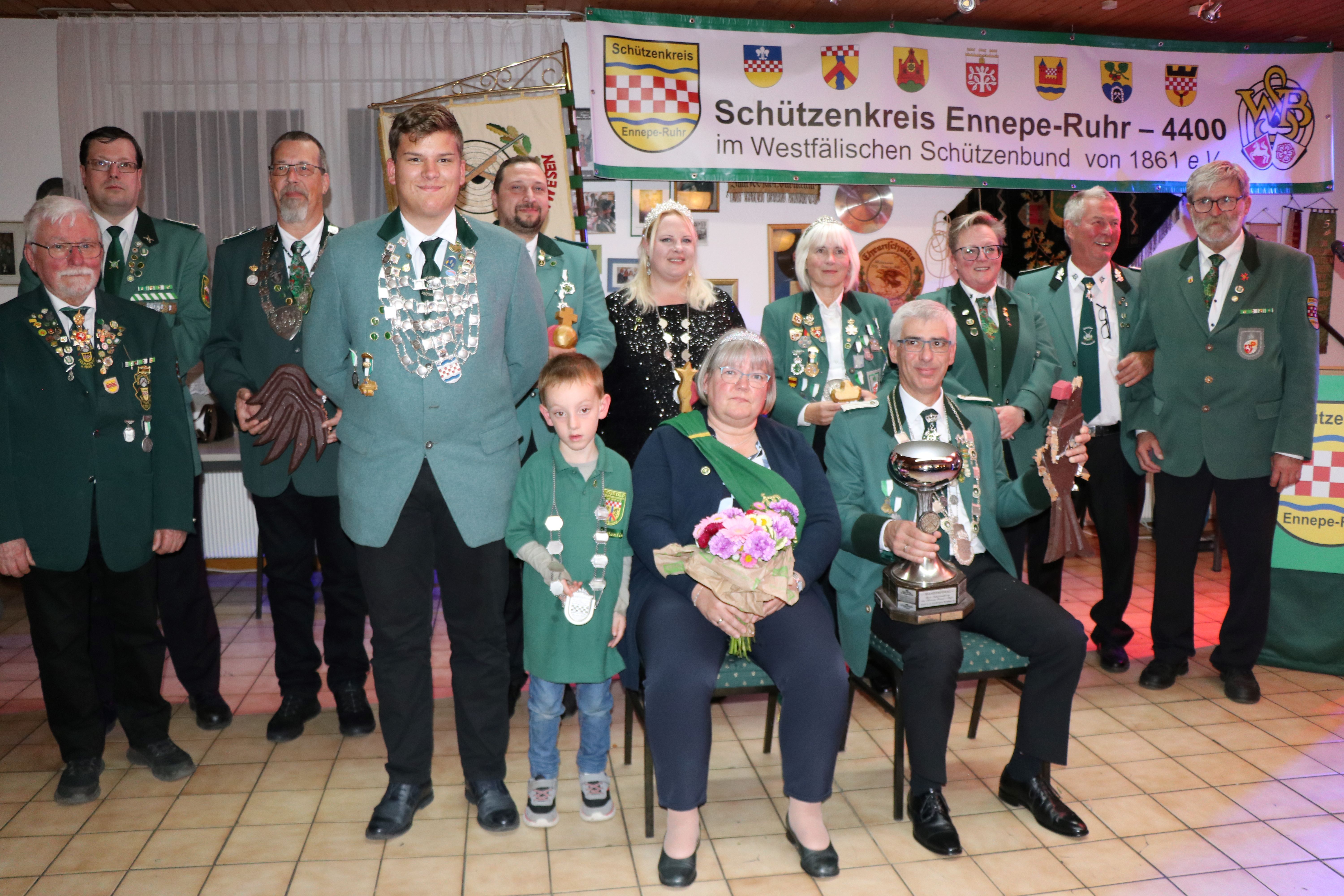 Das diesjährige Kreiskönigsschützenfest beim Schwelmer SV wurde bei herrlichem Spätsommerwetter ausgetragen. Erst mit Beginn der Ehrungen und Inthronisierung der neuen Majestäten regnete es stark. Kreisschützenkönig bei den Erwachsenen wurde Gunter Ritter vom SV Wilhelmshöhe, Kreisjugendkönig wurde Matti Bertram vom SV Voerde und Kreiskinderkönig mit dem Lichtgewehr wurde Constantin Giesick vom Voerder SV. Der ausführliche Bericht mit Bildern hier als PDF und die Ergebnisliste als PDF.