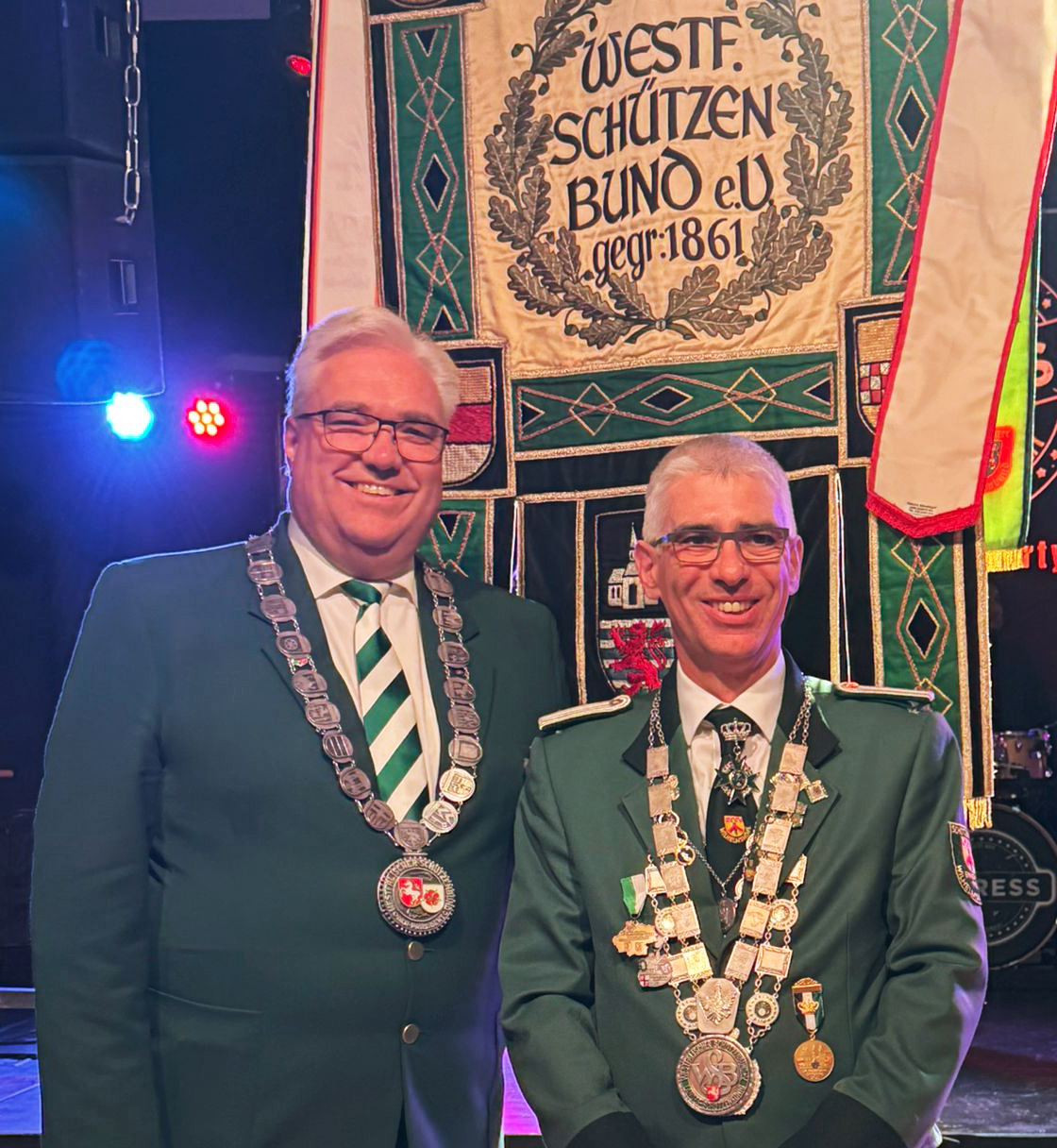 Auf Grund seines langjährigen Engagements für die Schützenvereine der Stadt Wetter wurde dem Bürgermeister Frank Hasenberg am 17.05.2025 vom Kreisvorsitzenden Erwin Wesner anlässlich eines Pokalschießens des Volmarsteiner SV, angeregt durch die 1. Vorsitzende Christine Neuburg, die goldene Ehrennadel des Schützenkreis-EN verliehen.